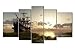 5 piece gallery wrapped blue ocean sea beach canvas paintings wall art prints ready to hang for home decorations wall decor. Each panel has a black hook already mounted on the wooden bar for easy hanging out of box.