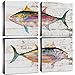 🐟【Coastal Decor Fish Wall Decor Size】:12x12 inch x4 Panels(30x30cmx4). Beach themed fish wall art: coastal wall art sea animal pictures. Colors :Teal, pink, yellow. Tuna mahi fish painting (colorful fish) modern beach decor for nautical florida home, coastal bathroom marine life wall decor.