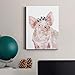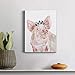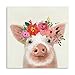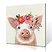 Lovely baby pig wearing flower wreath against a soft neutral patterned background is sweet art to add imagination to any room. This piggy picture is the perfect addition to your farmhouse style decor.