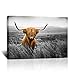 Quality Cow Prints:: HD printing of highland longhorn cow photos on high-quality canvas, waterproof, UV resistant, not easy to fade and long-lasting, which decorates your home with elegance and vintage atmosphere