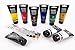 SET INCLUDES - Nine 75ml (2.4oz) tubes. Burnt Umber, Hooker's Green Hue Permanent, Mars Black, Primary Yellow, Primary Red, Yellow Oxide, Primary Blue, and Titanium White. Also contains a set of Basics brushes.