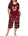【Feature】Two-piece printed pajama set comes with casual pajama top and matching capri pants. Soft pajama shirt features with round collar, short sleeves, and cute printed. Capri sleep pants featured relaxed fit.