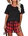 DESIGN&OCCASION:Soft 2 Piece Pajamas Set-TOP with Round-neck,short sleeve,stylish color block, PJ SHORT with Elastic waist,classic plaid & print,which suitable for every age group. Nice design Short Pajama Set for a relaxing day and night.