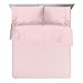 100% Cotton, 200 thread count. Full set includes one 54"inch x 75" inch fitted sheet, one 86"inch x 96"inch flat sheet and two standard 20"inch x 30" inch pillowcases. Fitted sheet has a full elastic hem for a secure and snug fit, fitted sheet also has top/bottom/side directional labels for a perfect fit on the first try, pillowcase has a side envelope enclosure.