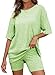【Classic Design in Style】2 pieces women pajama sets featured skinny knit ribbed, crew neck with dropped short sleeved women pj sets. High waist bike shorts in good stretch.