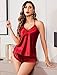 Short Pajama Set Women Features: Sexy Pajamas for Women, Women Cami Pajama Set, V Neck Pjs Set with Shorts, Sexy Lingerie Pajamas Shorts Set, Cami Lingerie Sleepwear, 2 piece Shorts Set; Featured with v neck camisole top with adjustable spaghetti straps, and the pjs bottom features side slit cutouts that make you really comfy and not tight at all.
