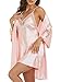 Material: Cami pajamas robe set was made of satin fabric, shinny and smooth to touch, lightweight, skin-friendly & comfortable.