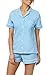 HUMANIZATION DESIGN —— Samring short sleeve pajama set is featuring classic notched collar with chest pocket, Button Down Top that is easy get on and off without mess up your makeup or hairdo, also is perfect for pregnancy pajamas breast feeding in the night ; pant features a chiffon drawstring elastic waist to make relaxing as comfortable as possible.