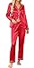 Features: Two Piece pajama set featuring with notch collar, long sleeve button front top shirts with pants sets, and one chest pocket design. Pajama pants with an elastic waist and two side pockets that fit any body size.Lightweight and skin friendly soft pajamas , long sleeve silk satin pajama sets for women, which is suit for daily wearing and easy to match.