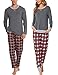 DESIGN&FEATURES: PAJAMAS TOP-Simple long sleeve O neck pullover. PJS BOTTOMS: Long plaid pants with a drawstring waist, 2 pockets on sides. Popular designs make your family wander more comfortable and elegant.