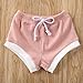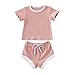 【Gentlemen Style Outfits】Retro clothes for little boy girl, Solid color pajamas for unisex, Short sleeve top and short pants 2 pieces outfits set, Crew neck with brown or white trim, Knitted top shirt and elastic waistband drawstring pants.