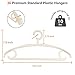 👚 DURABLE PLASTIC HANGERS: Reinforced plastic edges add durability to hang lightweight clothes like shirts, dresses and pants. White, clean design won't stain or have burrs or flash, 16” x 10” x 1/4" for adult-size clothing. Hook for convenient tie and accessory hanging.