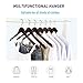 FUNTION: Suit hanger with curved shoulder helps keep your clothes in shape.Well-painted and perfect polish can take good care of your garments far from scuffing. Transparent anti-slip bar and clear deep notch let your clothes stay sturdily in their position. These hangers can hang shirts pants,jacket, sweater,camisole,dresses,hoodie.etc.