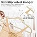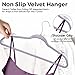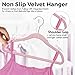 NON SLIP VELVET HANGERS : Keep your clothes neat and wrinkle free with these non slip velvet hangers. The velvet texture provides a secure grip, preventing your clothes from slipping or falling off the hanger. The notched shoulders and grooves on each hanger makes it perfect for hanging tank tops, dresses, skirts. The high quality velvet material doesn’t shed like other low quality hangers available in market.