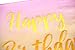 GOLD FOIL - Gold foil hot stamp "Happy Birthday" in cursive printed, pressed and embossed firmly