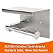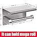 PREMIUM MATERIAL: Toilet paper roll holder storage with phone shelf + 2 pcs adhesive towel hooks are made by premium grade SUS 304 stainless steel, thickness 1.5 mm (1/16"), ensuring its durability and dependability. Never rust under any circumstance.
