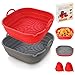 ULTRA VALUE SET:Weenkilly air fryer liner kit includes 2 reusable air fryer liners with 1 pair of oven mitts,exquisite packaging. 8.0" x 8.0" x 2.2" square silicone air fryer liners (1 Red, 1 Gray)for 4-6 quarts air fryer.
