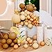 INCLUDING:35pcs gold balloons-25pcs 5 inch /10pcs 10inch ,47pcs white balloon-25pcs 5inch /20pcs 10inch /2pcs 18inch ,42pcs light brown with white double balloons-20pcs 5inch/20pcs 10inch/2pcs 18inch,2 tools-1pcs 5m balloon tape/1roll of dot glue.