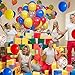 Carnival Party Balloons: 20pcs 12 inch blue balloons, 20pcs 12 inch green balloons, 20pcs 12 inch red balloons, 20pcs 12 inch yellow balloons, 2pcs 18 inch blue balloons, 2pcs 18 inch green balloons, 2pcs 18 inch red balloons, 2pcs 18 inch yellow balloons, 4pcs star foil balloons, 16 feet balloon arch strip, dot glue, tying tool, easy instruction.