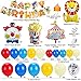 COMPLETE CARNIVAL PARTY DECORATIONS - 60pcs 10inch latex balloons, 60pcs 5inch balloons, 5pcs 18inch balloons, 5pcs 12inch confetti balloons, 1 cute clown foil balloons, 1 Lion Foil Balloon, 1 happy birthday foil balloons, 1 popcorn foil balloons, 1 happy birthday banner, 1 balloon strip, 1 roll ribbon, 1 roll glue dot. This is a complete circus theme party decorations pack, easy to assemble, and save you time and energy.