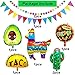PACKAGE INCLUDED - Fiesta Paper Hanging Decoration include 6pcs paper fans , 2pcs cactus balloons, 2pcs black letter balloons, 1set of 16 inch ‘“FIESTA”’ balloon. 5pcs paper flowers pompoms, 1pcs triangular pennant,1 pcs llama foil balloon,1 pcs taco foil balloon,1 pcs avocado foil balloon,2pcs 4 m colored dot ornaments。