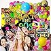 [UNIQUE IDEA] - We mix many elements of 90S 80S put up a garland.60pcs 10inch latex balloons (yellow/light blue/fruit green/light rose red). 40pcs 5 inch latex balloons (yellow/light blue/fruit green/light rose red). 2pcs 18inch latex balloons (light blue/yellow). 5pcs 12 inch Confetti balloons.1 inflatable guitar. 1 inflatable radio. 10Pieces 4 inch Foil Chain Balloons .1 inflatable microphone. 1 piece of 22-inch disco ball Foil balloon. 1 piece of balloon arched chain. 1 roll of glue dots.