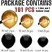 Package Includes: 18 Inch 6pcs, 10 Inch 50 pcs, 5 Inch 45 pcs (Metallic Gold and Black Balloons). Also includes 1 Dot Glue and 1 pc Balloon Chain