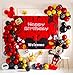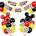 🎂This valued birthday party decorations set includes 18 latex balloons (6 black, 6 red, 6 yellow) and 6 confetti balloons,2 Cartoon Mouse head foil balloons (1 black, 1 red), 1 HAPPY BIRTHDAY banner.