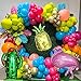 PACKAGE SPECIFICATION: Different size balloons including:10in,5in,18in, blue balloons, orange balloons, rose red balloons, gold chrome balloons,light green balloons.1 flamingo balloon,1 pineapple balloon ,1 cactus balloon.1 roll of dispensing strip (100 dot),17 FT double hole balloon chain (holes add up to 410Pcs), 1 rose red 33 FT long ribbons,1 balloon tie tool.