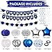 👨🎓Blue Graduation Party Decoration Supplies: 1set blue 2023 graduation banner, 1pcs blue black bachelor cap banner, 2pcs 18" blue star foil balloon, 2pcs 18" silver star foil balloon, 3pcs 10" blue paper pompoms, 3pcs 10" white paper pompoms, 3pcs 10" silver paper pompoms, 6pcs blue hanging swirls, 6pcs silver hanging swirls, 10pcs 12" dark blue balloons, 10pcs 12" white balloons, 10pcs 12" silver balloons, 5pcs 12" blue confetti balloons, 2pcs black ribbons.
