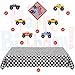 Package includes: this truck birthday party supplies include 10 pieces of latex 12-inch balloons in red and yellow, 30 pieces of latex 10-inch balloons in 3 different colors (each color has 10 pieces), 30 pieces of latex 5-inch balloons in 3 different colors (each color has 10 pieces), 2 mosaic 18-inch foil balloons, 2 truck foil 25-inch balloons, 1 race car table cover, 1 truck backdrop (4.92 x 3 feet), 1 big truck cupcake topper and 6 small cupcake toppers