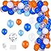 Dart war party balloon garland kit: 10 orange blue confetti balloons (12 inch), 30 orange dart war balloons (10 inch), 35 dark blue latex balloons, 10 white balloons, 10 light blue balloons, 15 orange balloons (5 inch), 1 roll double hole balloon chain (16.4 ft), 2 sheets dot stickers (20 pieces for each sheet), which can meet your decorative needs and replacement