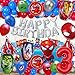 【BALLOON SET】1 giant foil balloon in the shape of Spider-Man, 4 x 18 inch Marvel hero head foil balloons, 2 x 18 inch round Spider-Man foil balloons, 1 x red 32 inch number 3 balloon, 8 x Marvel latex balloons for a total of 16.
