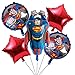 (1) 26" Anagram Licensed Emblem foil balloon, (1) 34" Giant Red Number 1 Shape Foil Balloon, (2) 18" Superhero Comic Round Happy Birthday Mylar Balloon, (1) 18" Man of Steel Happy Birthday round foil balloon, (1) 18" Birthday Present Balloon and (3) 11" White latex balloon with Red and Blue star print.