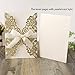 GOLD GLITTER INVITATIONS CARDSTOCK WITH PEARLY PAPER: laser cut wedding invitations with ribbon bowknot ,it is very beautiful hollow lace floral silk ribbon design invitations cards. Gold Glitter pocket ,printable beige inner sheet with pearlescent. white envelope with adhesive stickers