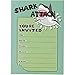 COOL DESIGN: Contains 24 postcard style invitation cards with shark illustrations on one side for children birthdays, theme parties, and play dates.