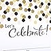 Host a party with these single-panel invitations decorated with cascading gold and black polka dots with glittering gold accents.