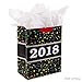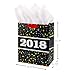 Congratulate the 2018 grad with a gift bag decorated just for them featuring confetti on a black background and shiny silver accents. Red grosgrain ribbon handles add an elegant finishing touch.