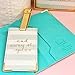 "This girl was meant to see the world" in script by Dayna Lee is etched on the front cover of the passport pouch for travel while "and away she goes" is etched on the luggage tag. This elevates the elegance, making these mint stripy travel must haves chic and stylish while still serving as safe travel accessories