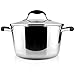 18 10 Food Grade Stainless Steel: 5 Quart Stew Pot with glass lid and ergonomic handles. Special matte finish inside, mirror finish outside for shiny stylish look. Shatterproof glass lid. Measurement Marks Inside.