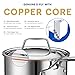 GENUINE 5 PLY DESIGN. Each layer of premium metal serves a purpose: 304 stainless steel for safe, easy-clean cooking; a thick copper core for rapid, reliable conductivity; aluminum layer A & B; and 430 magnetic steel for performance on all cooktops. The aluminum layers help reduce the weight of the sturdy copper layer. Heat distribution to handles may occur over long periods of high temperature cooking. Make sure to use a potholder when grasping handles.