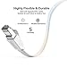 Unique Flat Design : This slim and flexible flat Ethernet cable allows for a cleaner and safer installation, improving the look of your home or office. Doesn't tangle like the typical round ones do, flat LAN cables are super flexible and can be easily hidden in carpets, door seams and more. You could easily curled it into loops without taking up space if you don't need the entire length.