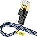 Durable flat weave design: Cat 13 Ethernet cable wrapped in a high quality braided fishnet wire, Compared to other round cables, the flat design lan cable takes up less space when installed, and is suitable for embedded installations such as carpets, floors, etc.