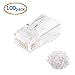 Cost effective 100-pack of Cat6 connectors provides enough connectors for a large project or multiple small jobs; Construct multiple patch cables in the perfect length for router, patch panel, or workstation applications with this crimp connector; Cat 6 crimp connectors are compatible with Cable Matters RJ45 Strain Relief Boots to protect the clip from accidental damage and bolster the integrity of the cable
