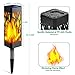 [Premium Quality Material] Made with rust-resistant black coated premium stainless steel, our Flickering Flame solar pathway lights are designed to last. Also, the impact-uv-pc lampshde not only ensure the torch is waterproof, but also make the flame effect more realistic.