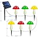 【Package includes】---Multi-colour (two yellow, two green and two red) .1 pack of Set of 6 Mushroom, 6*stakes(for mushroom lights).
