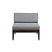 Walnut colored base and grey fabric cushion that can easily stand up to any weather conditions.