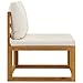 Cushion color: Cream whiteMaterial: Solid acacia wood with an oil finish, fabric (100% polyester)dimensions: 26.7" x 27.5" x 23.6" (W x D x H)Seat/back cushion thickness: 2.3"Assembly required: YesDelivery contains:1 x Middle sofa1 x Seat cushion1 x Back cushion