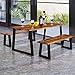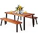 3 Piece Outdoor Furniture Set: This 3 piece outdoor table set includes one table and two benches, available for 6 people. Long enough to comfortably seat all of your guests or use the table as a buffet style serving table, while having the benches double as standalone seating. Comfortable sitting height with proper table height allows adults even for kids to sit on steadily.
