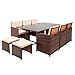 - Space Saving Design: This 11 pieces patio dining set is designed for saving space. When you are not using it, the armchairs , ottomans and removable cushions can be convenient stored under the table. Meanwhile, also can increase the service life.